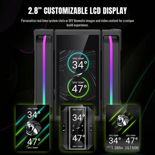 | ДОПЪЛНИТЕЛНИ | 2.8 inch Customizable LCD Display Equipped with 6 x 6 mm heatpipes and dual 120mm fans for powerful, efficient heat dissipation Precision Soldered Copper Base |