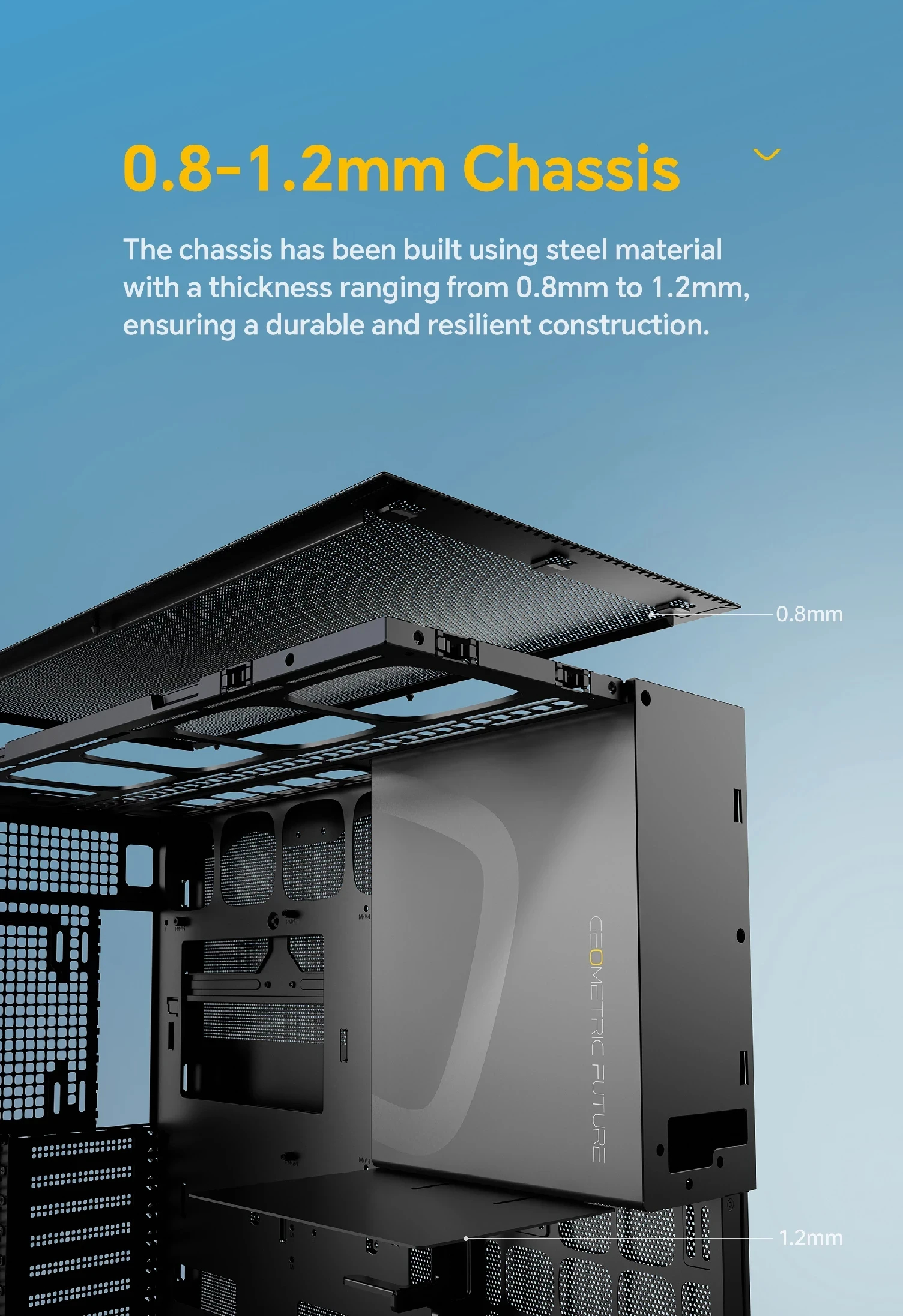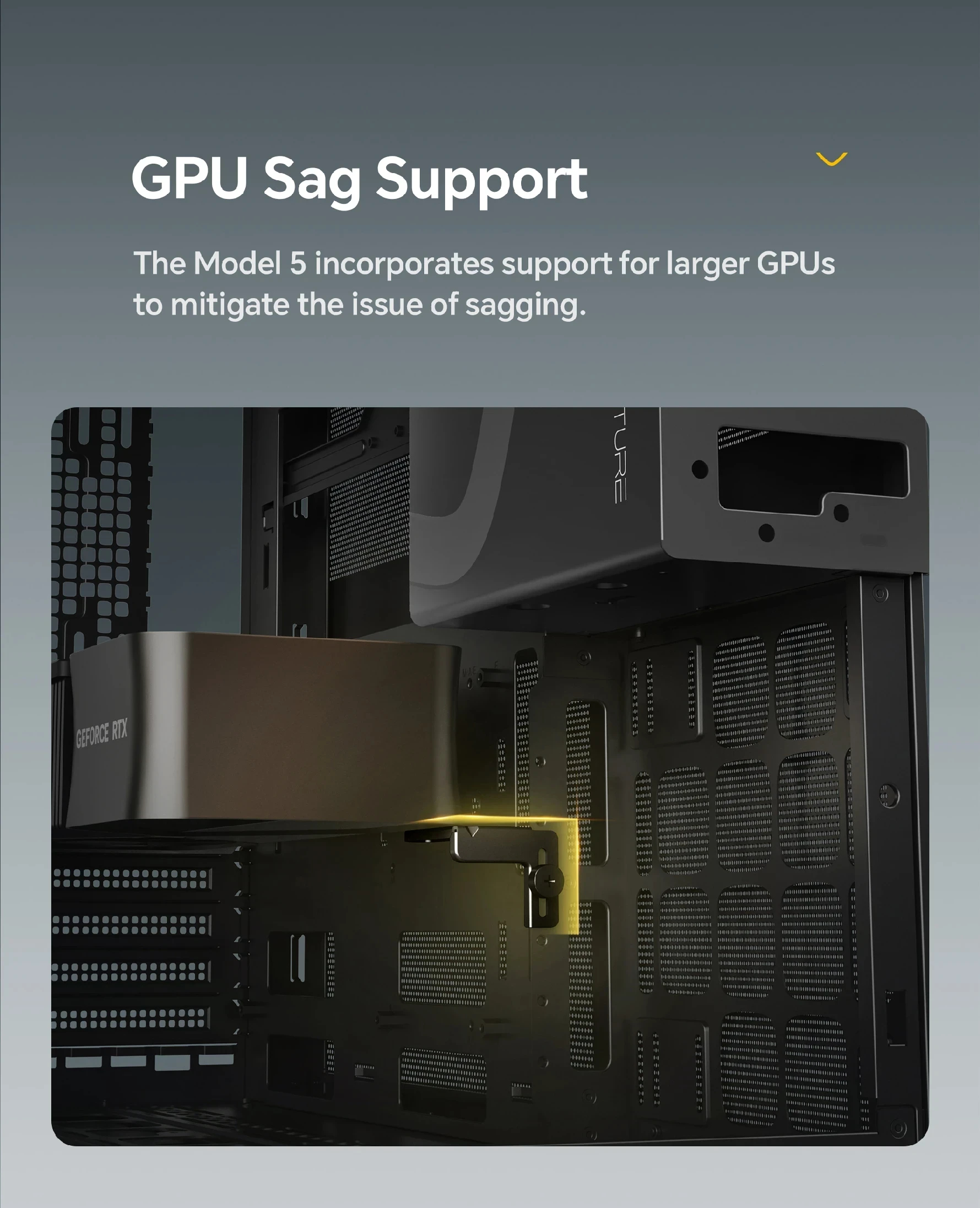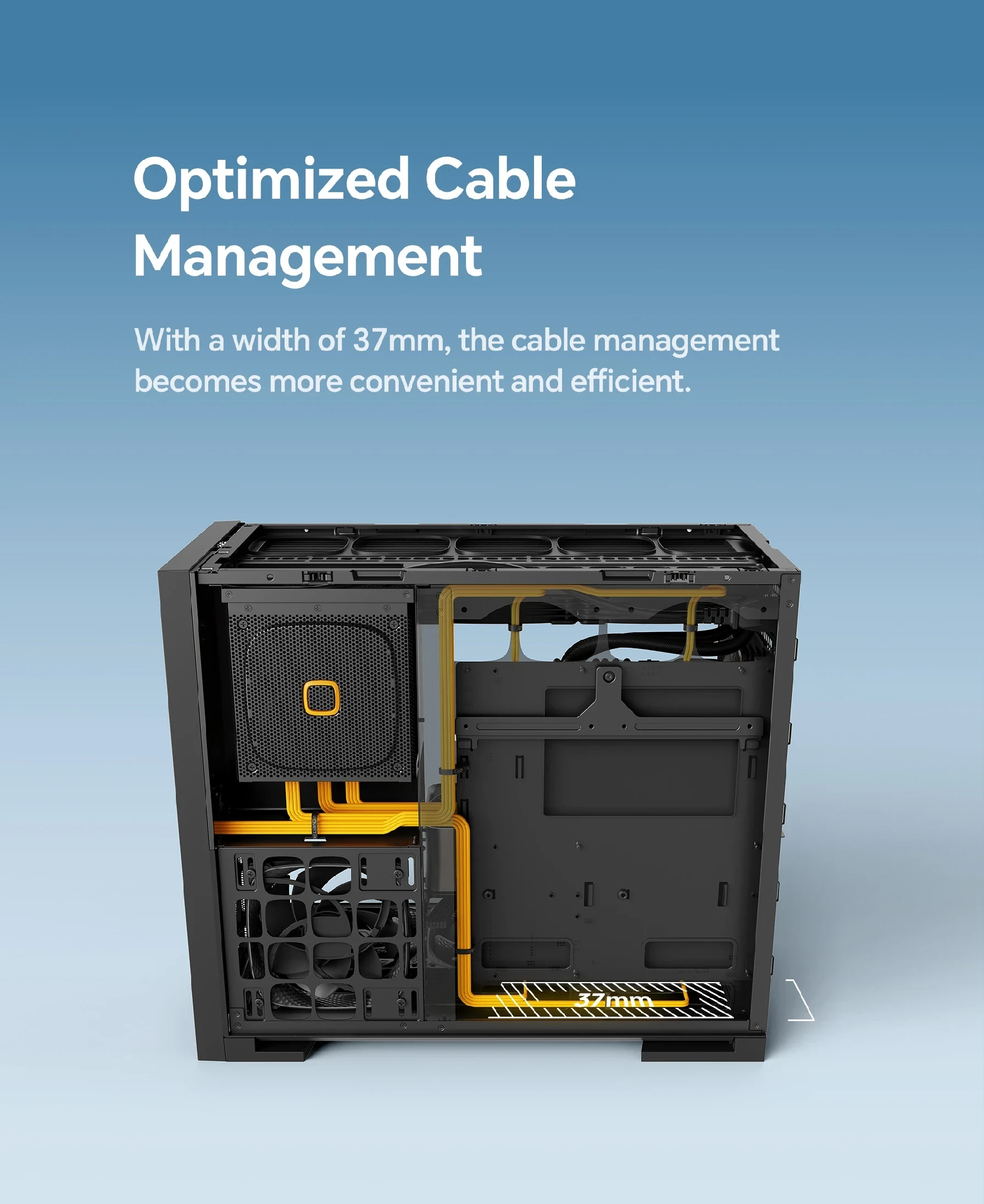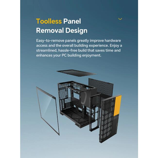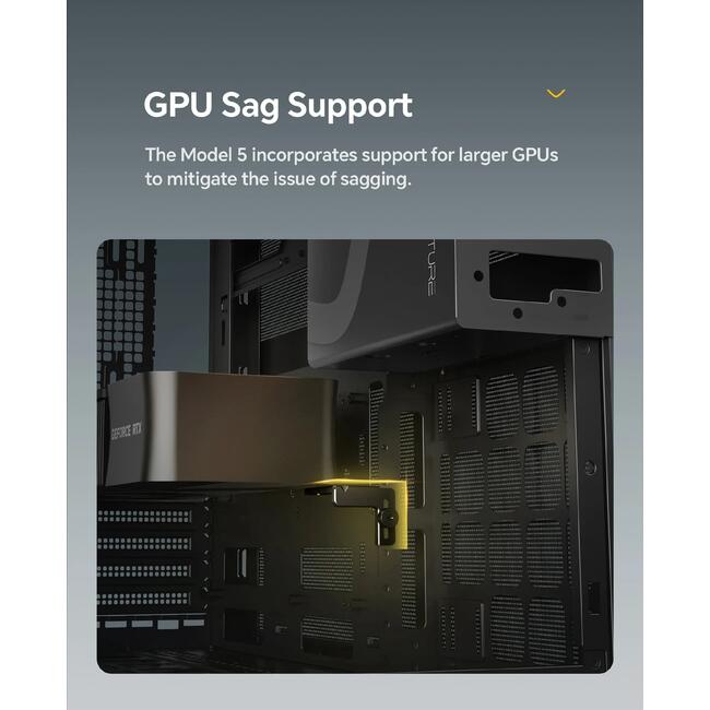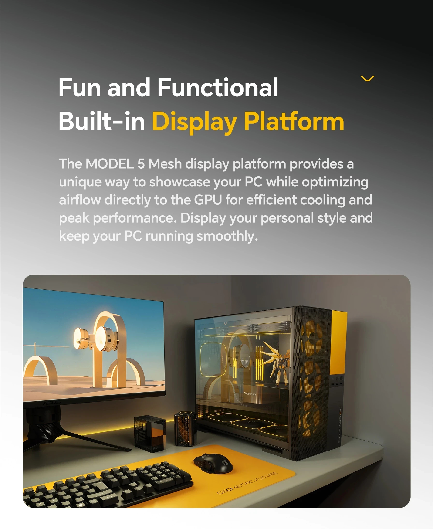 ДОПЪЛНИТЕЛНИ | 5 x 140 mm ARGB fans Pre-Installed (Bottom and Front Side reversed) Optimized mesh panel for maximum airflow performance Supports 420mm radiator, E-ATX and 430mm GPUs 0.8-1.2mm thick steel for entire chassis Supports up to 13 x 120mm fans Fun yet functional built-in display platform Unique location for the PSU |