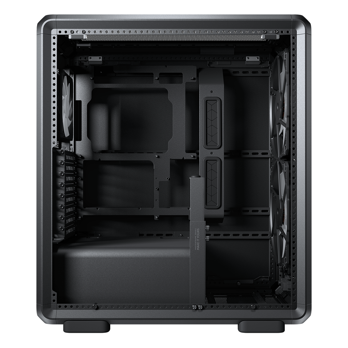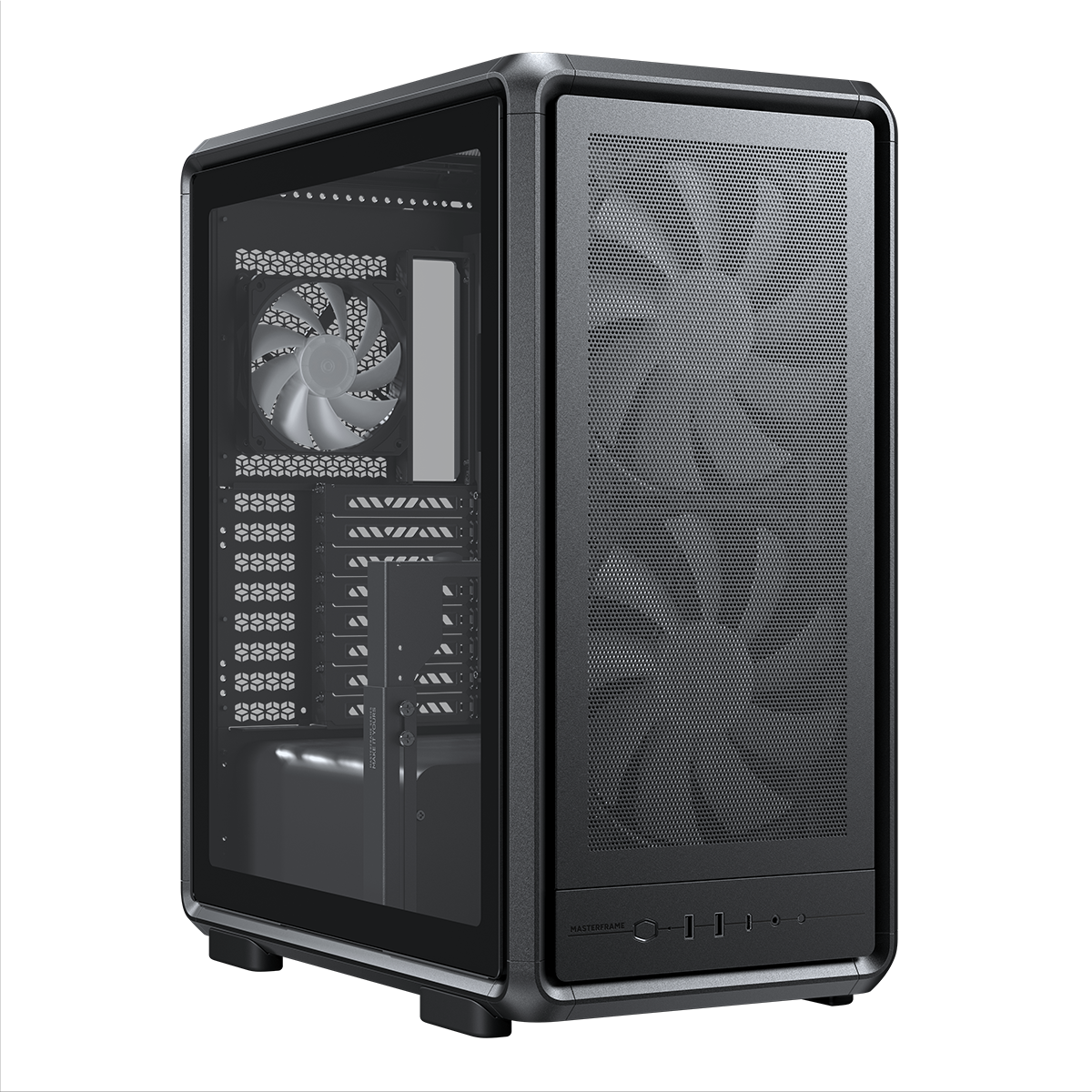 Cooler Master MasterFrame 500 Mesh е висококласен open‑frame корпус, създаден за максимален въздушен поток, пълна модулност и поддръжка на мощни охлаждащи системи. Благодарение на големите mesh панели, двойните 200 mm вентилатори и свободата за конфигурация, той е отличен избор за ентусиасти, модъри и потребители, които искат да покажат хардуера си.