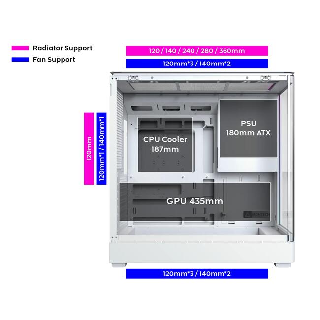 | ПОДДРЪЖКА НА ВОДНО ОХЛАЖДАНЕ | 360 mm - Отгоре 280 mm - Отгоре 240 mm - Отгоре 140 mm - Отгоре 120 mm - Отгоре 120 mm - Отзад |