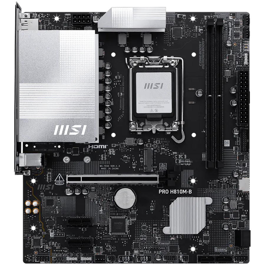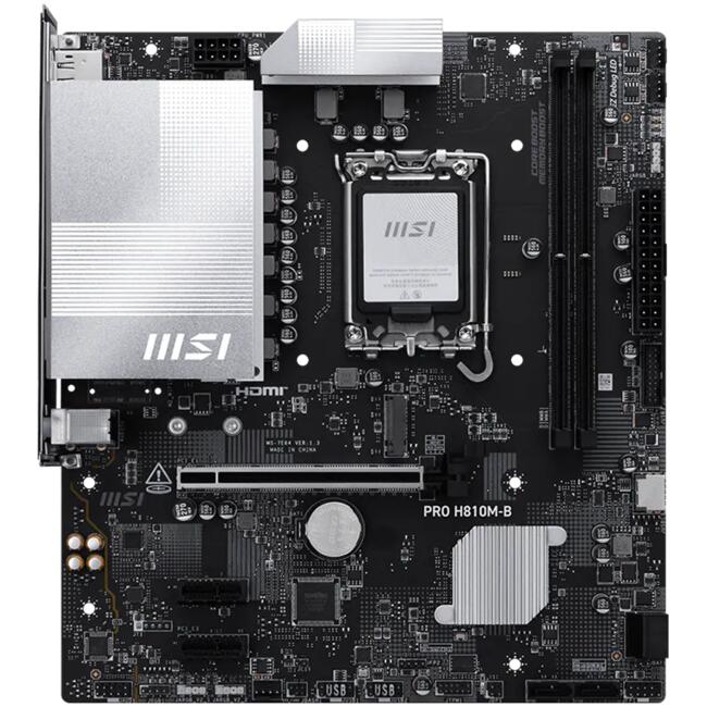 MSI PRO H810M-B е надеждно решение за вашата компютърна конфигурация. Съвместимостта с LGA 1851 и поддръжката на DDR5 RAM до 6400(OC)MHz гарантират изключителна производителност. Осигурете си стабилна връзка с 2.5G LAN и се наслаждавайте на кристално чист звук с 7.1 HD аудио.