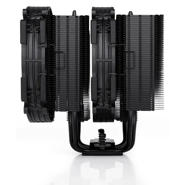 Noctua NH-D15 G2 Chromax.Black е премиум двоен куулер, изцяло в черно, който предлага изключителна ефективност на охлаждане и елегантен дизайн. С 8 топлинни тръби, 20% по-голяма охлаждаща повърхност и вентилатори NF-A14x25 G2, този модел комбинира максимална термична производителност с ниски нива на шум и широка съвместимост със съвременни Intel и AMD сокети.