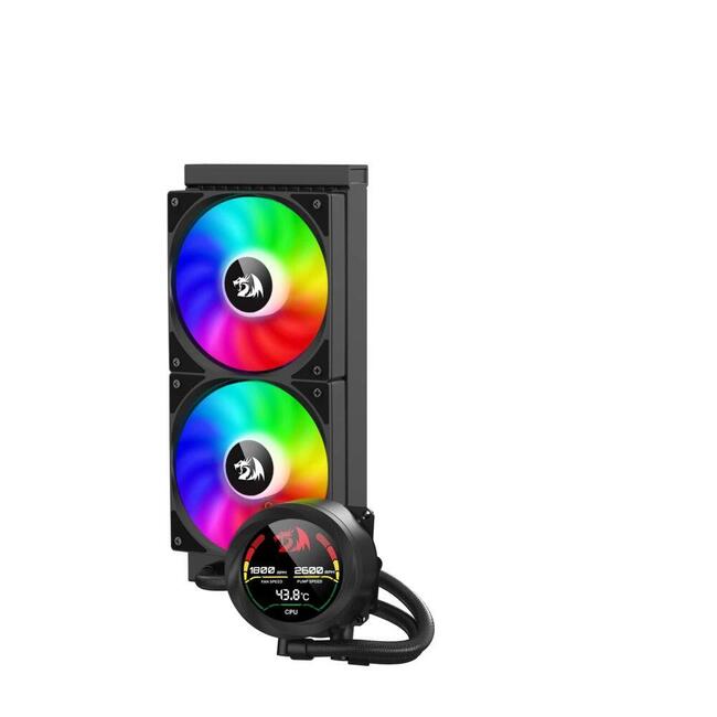 Redragon CCW-1019 е високопроизводително течно охлаждане за процесор, създадено за гейминг и натоварени системи. Поддържа до 250W TDP и разполага с два 120mm вентилатора с хидравличен лагер и PWM управление, които осигуряват ефективно охлаждане и впечатляваща aRGB подсветка с 16.8 милиона цвята. Безшумната помпа е снабдена с дисплей, който може да се върти и показва температурата на процесора или друга информация.