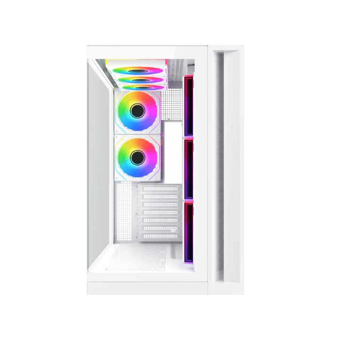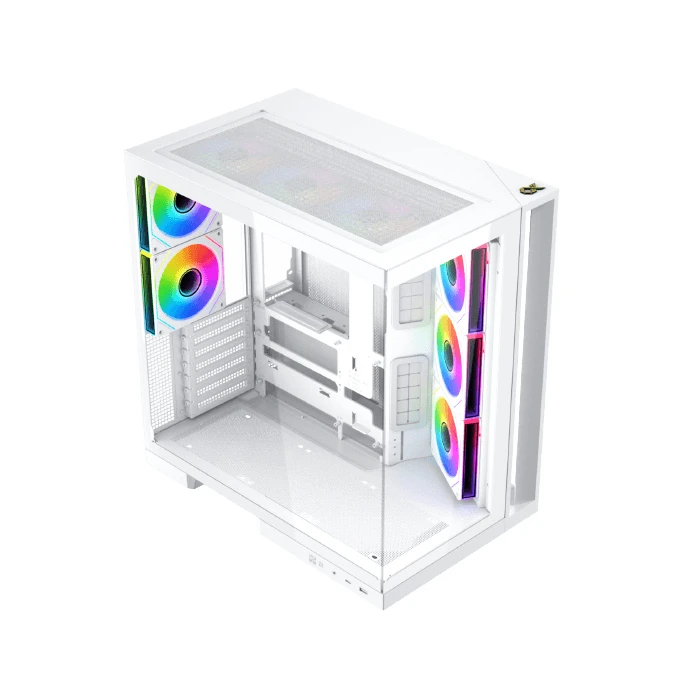 | ДОПЪЛНИТЕЛНИ | 2 Tempered Glass Panel Design Angled Front-Right Fans and an Airflow-Optimized Layout Keep Temps Low and Performance Steady Top Dust Filter E-ATX (= 285mm) ATX (Support Back Plug) M-ATX (Support Back Plug) Mini-ITX(BTF) Support GPU Vertical Installation PSU Limitation up to 180mm SSD/HDD Mounting Flip Cover |