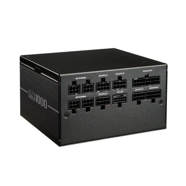 Cooler Master Elite Gold 1000 е напълно модулно 1000W ATX 3.1 захранване, създадено за модерни геймърски конфигурации. То предлага 80 Plus Gold ефективност, тих FDB вентилатор и надеждна работа дори при високи натоварвания до 40°C. Поддържа следващо поколение видеокарти, разполага с релефни модулни кабели и осигурява стабилност за ежедневни и ентусиастки системи.
