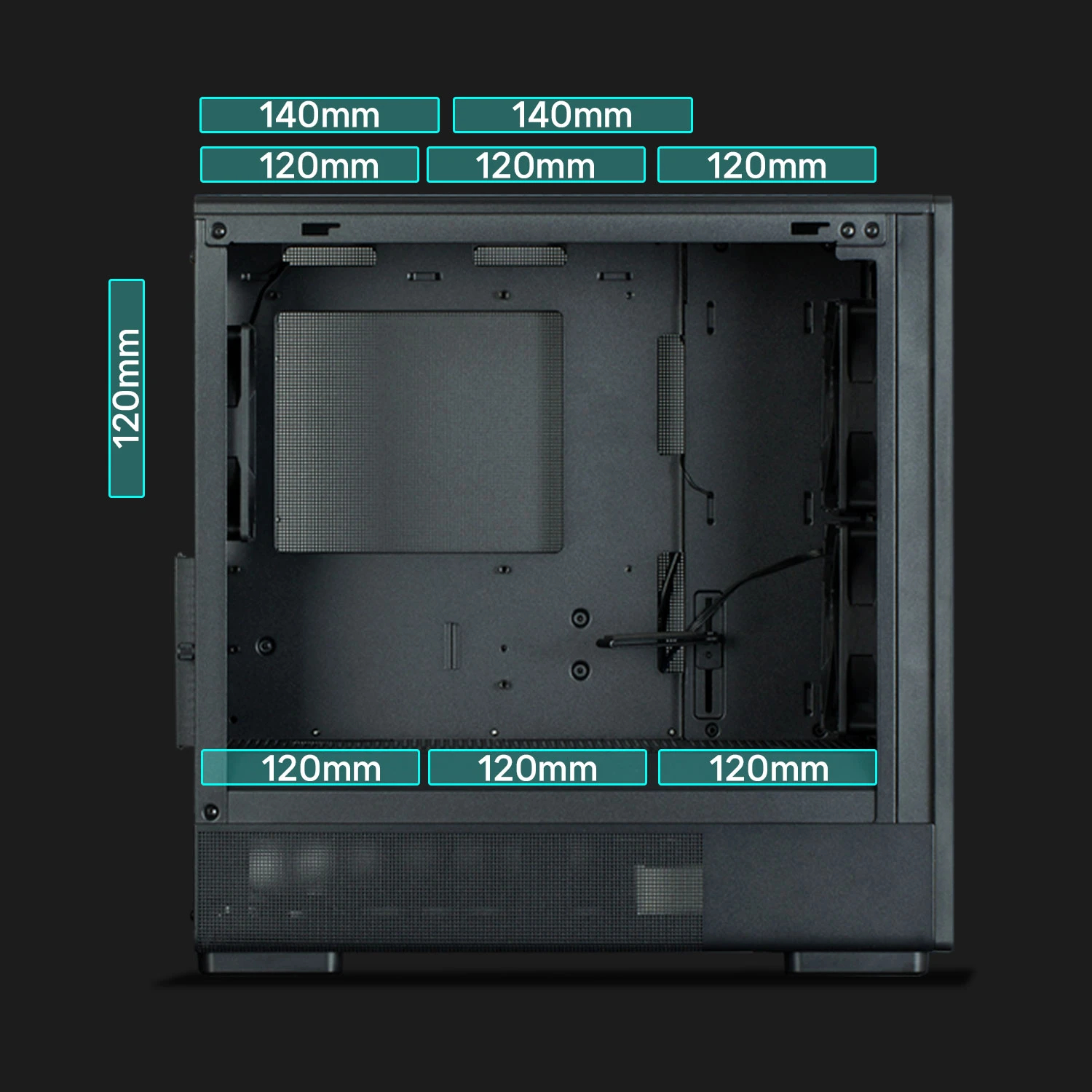 ОПЦИОНАЛНИ ВЕНТИЛАТОРИ | Top: 3 x 120 mm / 2 x 140 mm Front: 2 x 120 mm Rear: 1 x 120 mm Bottom: 3 x 120 mm |