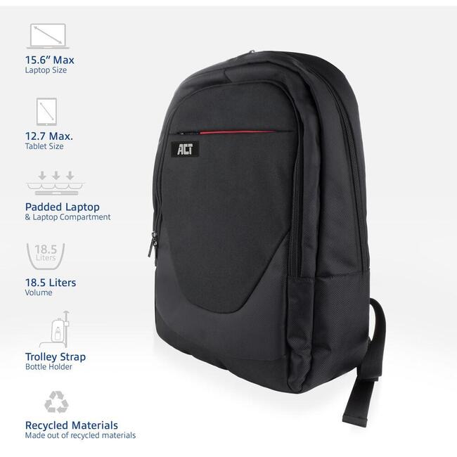 ACT Suburb е ежедневна раница за лаптоп до 15.6", изработена от водоотблъскващ rPET плат от рециклирани пластмасови бутилки, с обем 18.5 литра и ниско тегло 0.62 kg. Тя предлага отделни подплатени отделения за лаптоп и таблет, три основни секции за аксесоари и документи, както и страничен държач за бутилка и лента за прикрепяне към куфар за по-удобно пътуване.