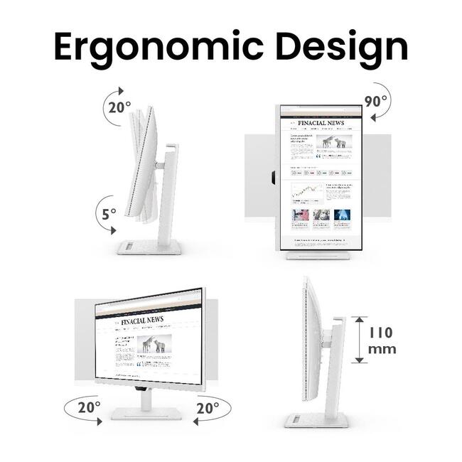 Ергономичният дизайн предлага лесно персонализиране на височината, наклона и завъртането на монитора.