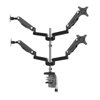 Регулируема Desktop стойка с газов амортисьор за 4 монитора с размер 10~27”. Максимални размери: 810x1450mm. Захващане за плоскост с дебелина 20~120mm. Регулиране на наклона – вертикално: -85~15º, хоризонтално: ±90º. Ротация: ±180º. VESA : 100x100mm, 75x75mm. Максимално натоварване на рамо: 9kg. 4xUSB Порт. Материал: алуминий, сив цвят.