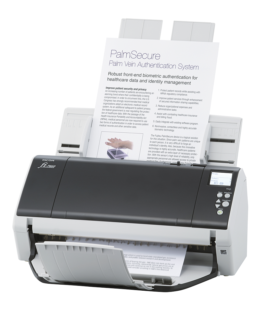 Ricoh скенер FI-7460 e с формат A3, способен да сканират дори документи с размер A2 и A1.