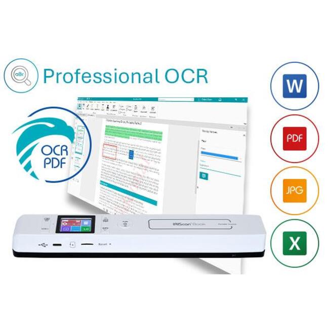 Съвместим със софтуера Readiris™, IRIScan Book 7 конвертира документи в Word, PDF и Excel. Предлага се и версия за хора с дислексия, оптимизирана за асистивни технологии. Подходящ за ученици, преподаватели, лекари, търговци и мобилни професионалисти. Това е интелигентно решение за бърза дигитализация навсякъде и по всяко време.