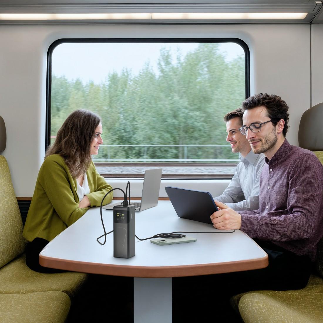 Батерията позволява едновременно зареждане и разреждане (Pass-Through), което я прави идеален избор при работа, пътуване, къмпинг, фестивали или на учебни занимания. С нея винаги имаш надежден и мощен източник на енергия под ръка – отвсякъде.