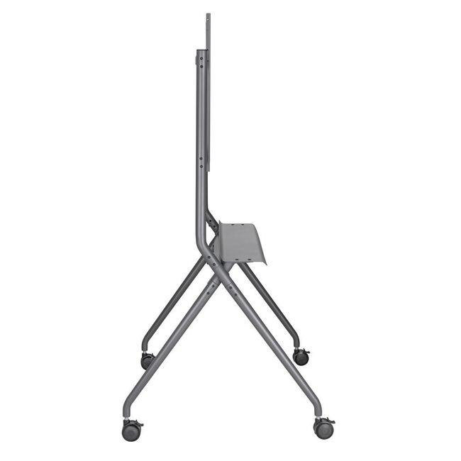 Мобилна стойка представлява цялостно мултимедийно решение, което превръща всеки голям дисплей в мобилна презентационна станция. Благодарение на здравата си конструкция от стомана, тя осигурява безкомпромисна опора дори за най-тежките интерактивни монитори или широкоформатни телевизори. Четирите подсилени колела позволяват плавно придвижване между кабинети и зали, независимо от подовата настилка, а интегрираните спирачки гарантират пълна неподвижност по време на работа.
