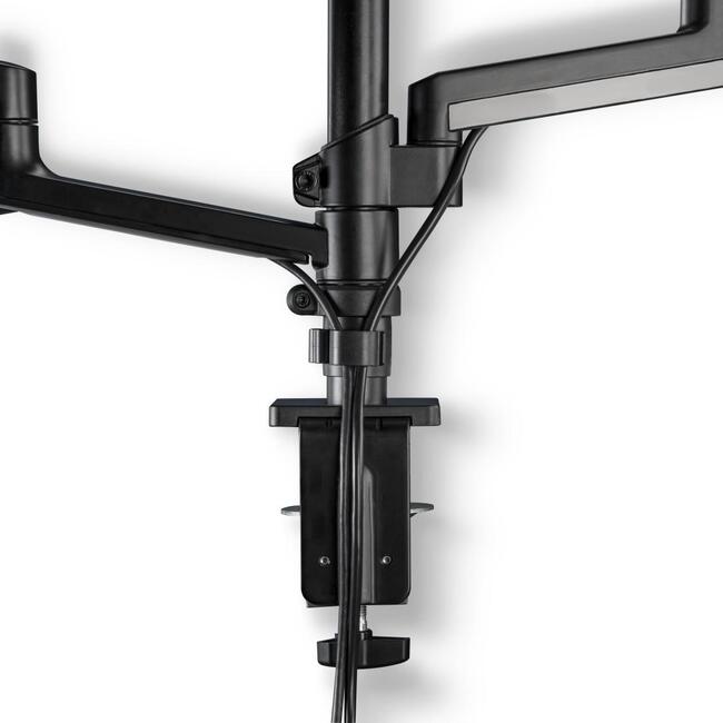 Рамо за повдигане и фиксирано рамо за инсталиране на два TFT/LCD/LED монитора или един монитор и един лаптоп, благодарение на предоставения държач за преносим компютър