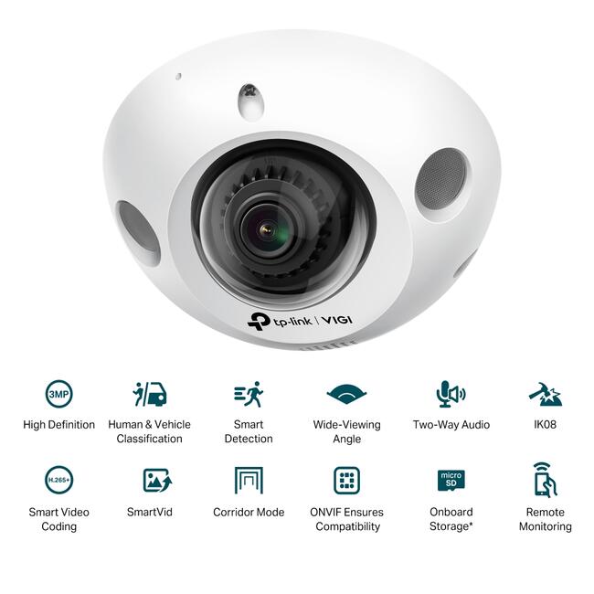 С малък, компактен форм фактор и 2,8 мм ултраширокоъгълен обектив, мини камерата VIGI C230I е идеална за коридори, асансьори, малки складове и магазини, където пространството е ограничено и се изисква широк изглед.