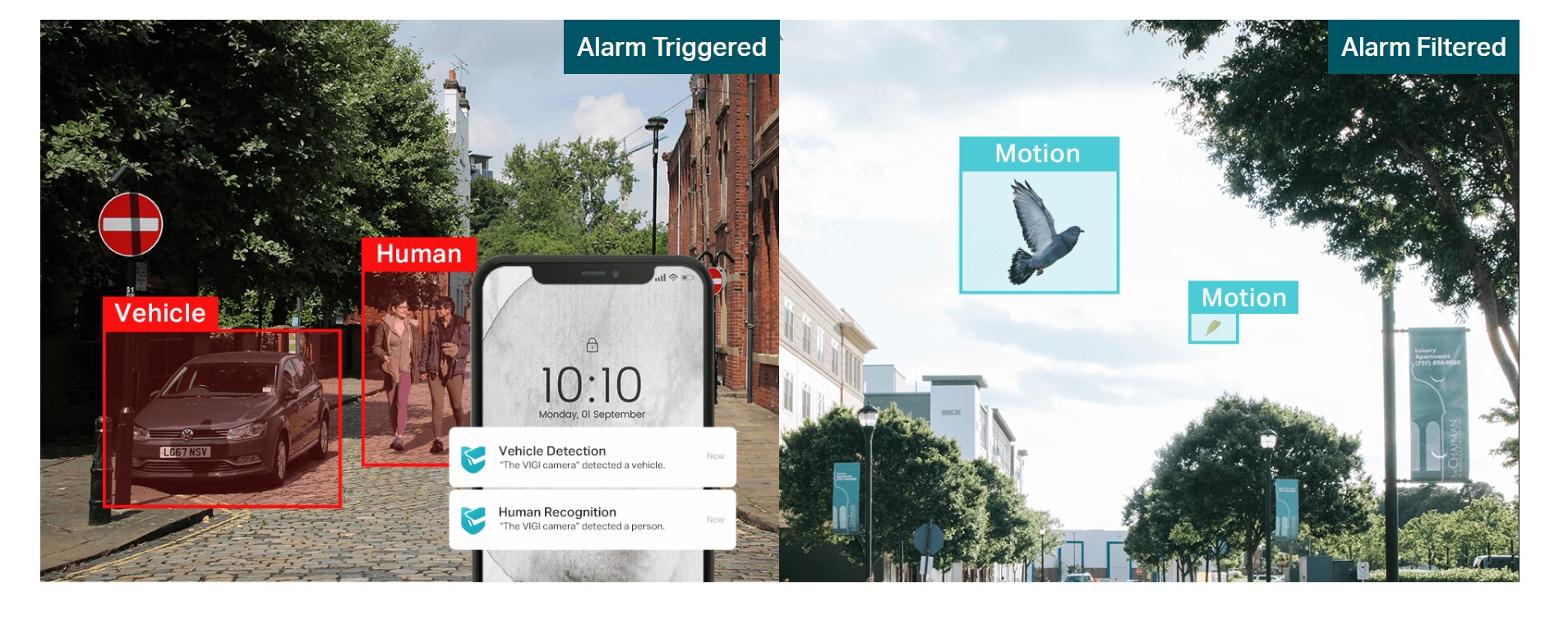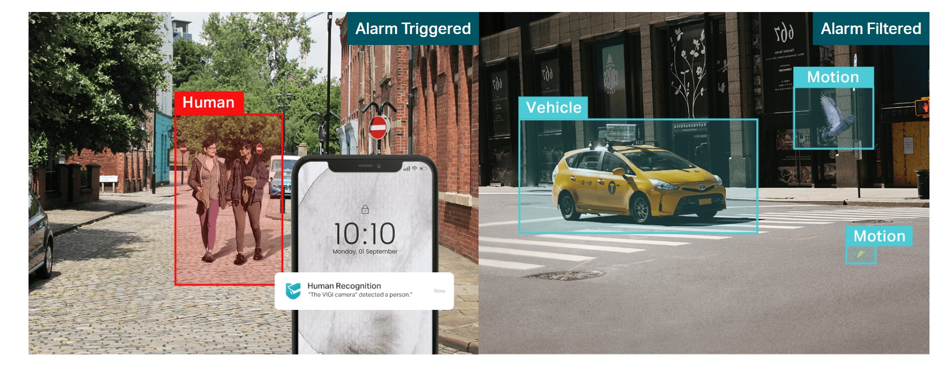Интелигентно откриване - Подкрепена от AI алгоритми, VIGI камерата предлага по-интелигентно откриване. Ще получавате известия, когато някой пресече граница, навлезе в зона, която сте задали, пречи на камерата или премахне/изостави обекти.