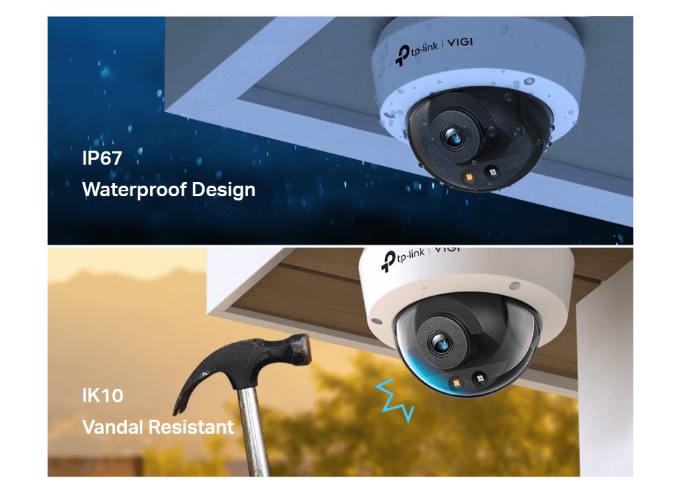 Със вандалоустойчив, здрав корпус и водоустойчив дизайн, тази куполна камера VIGI е създадена да издържи на вандализъм и тежки среди с дъжд и прах за постоянна сигурност навсякъде и по всяко време.