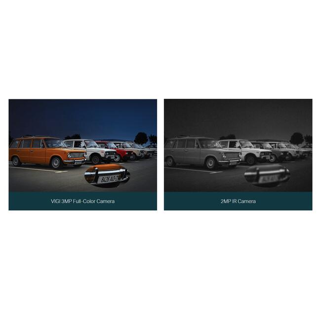 Наблюдавайте 24 часа ясни и цветни детайли дори в тъмна нощ. Пълноцветната камера на VIGI осигурява максимални 3MP резолюции и гарантира цветно наблюдение със своя обектив с голяма апертура, сензор с висока чувствителност и прикрепени допълнителни светлини.