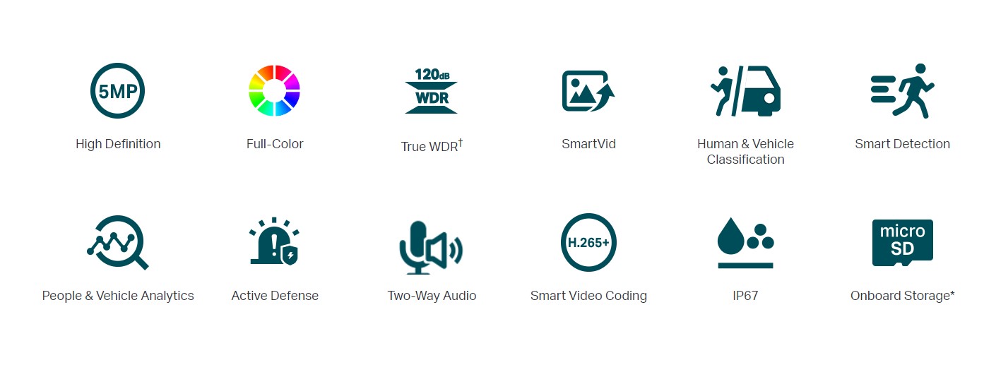 Наблюдавайте 24 часа ясни и цветни детайли дори в тъмна нощ. Пълноцветната камера на VIGI осигурява максимални 5MP резолюции и гарантира цветно наблюдение със своя обектив с голяма апертура, сензор с висока чувствителност и прикрепени допълнителни светлини.