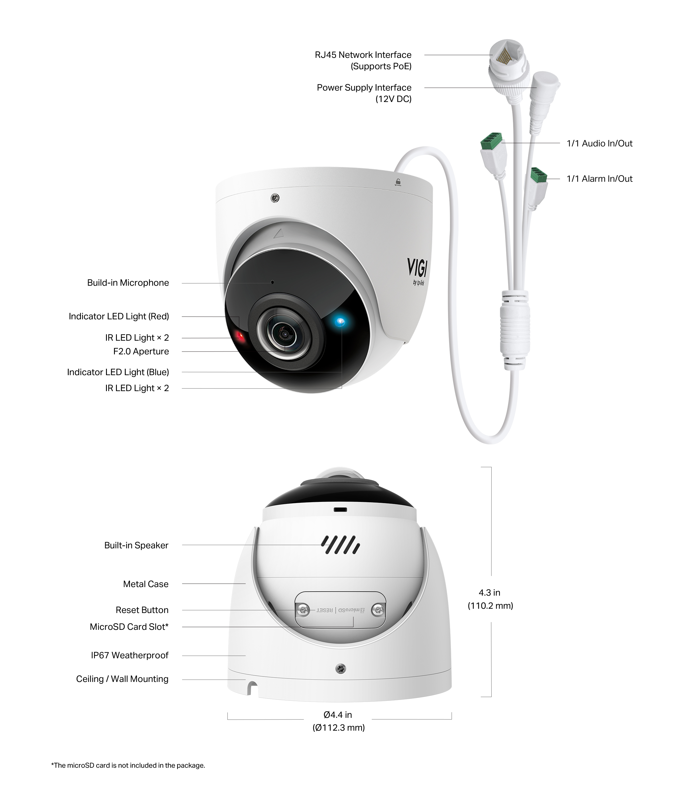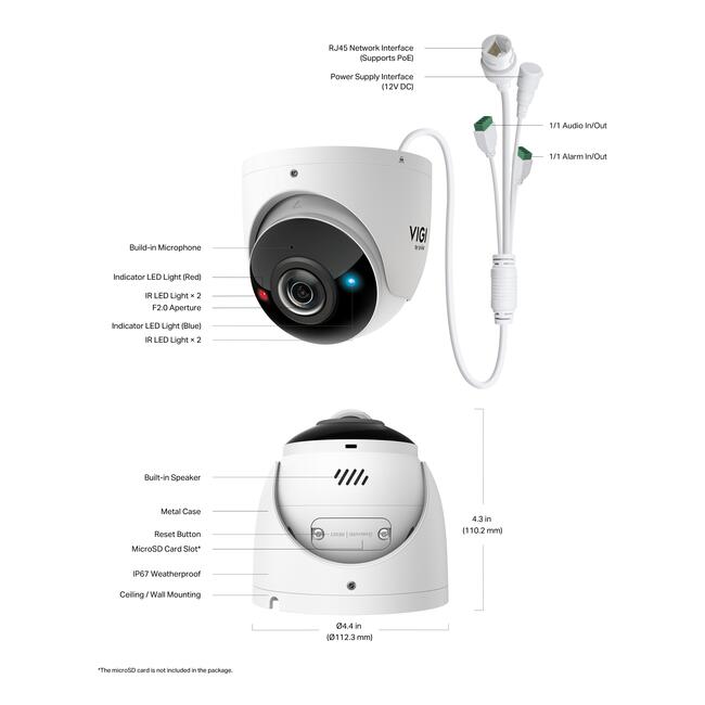 Smart IR: Smart IR динамично регулира инфрачервеното осветление, за да предотврати преекспониране и отблясъци, подобрявайки видимостта на различни разстояния и осигурявайки по-ясни кадри.