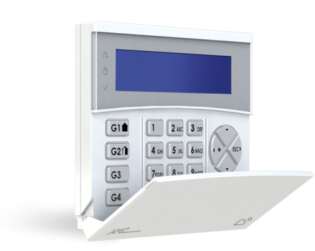 Безжична LCD клавиатура със вграден RFID & NFC четец, съвместима със панели AMC. 2-редов, 32-символен син LCD дисплей. Двупосочна комуникация с панела, Работна честота 868.3 MHz, FSK модулация, 128-bit AES криптиран променлив код. Вграден тампер ключ. Диoдна и звукова индикация. 4x Програмируеми бутона. Размери: 135x116x24mm. Захранване: 2x AAA батерии или DC4~18V/5μA(standby), 60mA(max). Икономичен режим на работа при захранване от батерии, живот на батериите ~3 години.