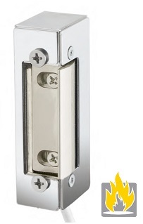 EN Електрически насрещник за аварийни пожарни врати. Fail-secure, отключва под напрежение. Регулиране на челюста. Задържаща сила 1000kg. Преминал тест от 500 000 работни цикъла. Симетричен корпус: ляво/дясно. Захранване: DC24/180mA; Работна температура: -25°~70°C. Размери: 75.4х21х28mm, Челюст 6mm, регулиране 4mm. Сертификат: EN 13501-2:2004; EN 1363-1:2000; EN 14746; EN 1634-1:2000. Сертифициран за работа EI 120 min в условия на пожар.