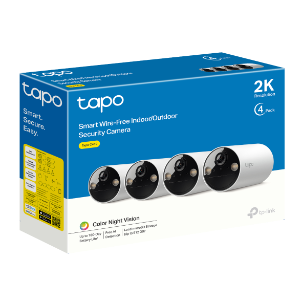 Със своята вградена акумулаторна батерия Tapo C410 намалява честотата на презарежданията, осигурявайки до 180 дни непрекъсната работа с едно зареждане.