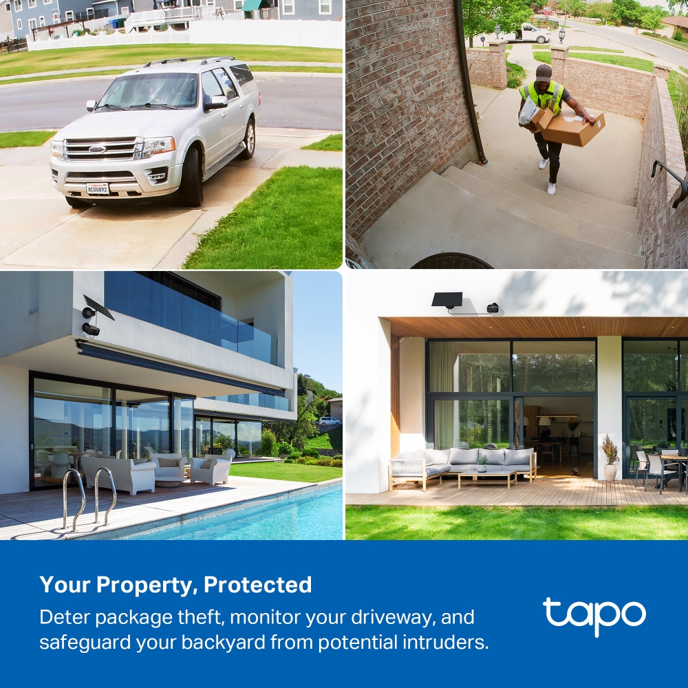 Насладете се на пълна сигурност на открито без ограниченията на кабелите. Tapo C400 осигурява цялостно наблюдение – от възпиране на кражба на пратки и опазване на превозни средства до осигуряване на задния ви двор и мониторинг на всички открити пространства, включително градини, басейни и гаражи.