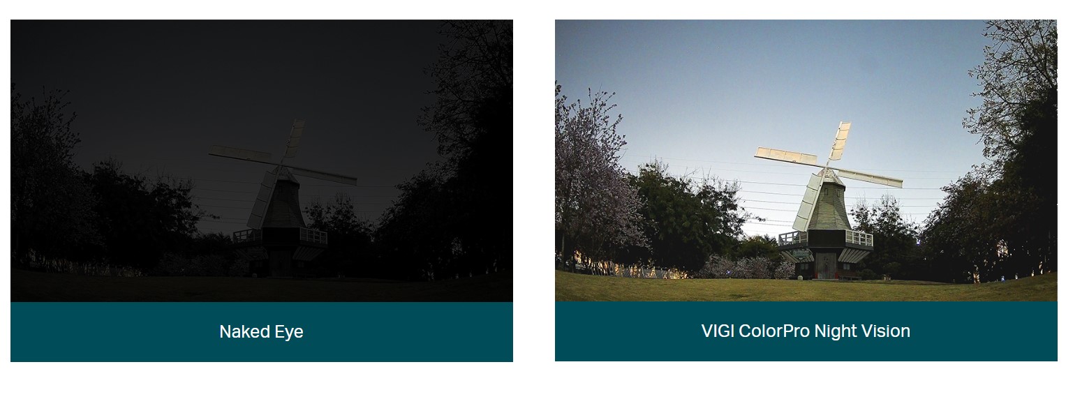 Отличаващ се с висока чувствителност при слаба светлина, ColorPro Night Vision на VIGI създава несравними цветове заедно с невероятно ясни изображения в