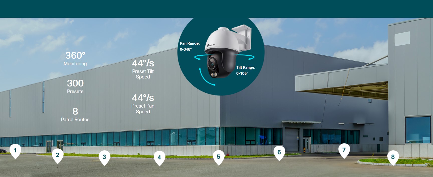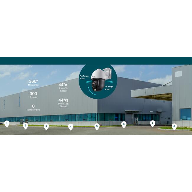 Покривайте гъвкаво всеки ъгъл с Pan Tilt камерата на VIGI. Персонализираните патрулни маршрути предоставят по-интелигентни и бързи опции за наблюдение на ключови зони (до 8 точки за всеки маршрут), намалявайки ръчните разходи за многократно регулиране на ъглите на панорама и наклон.