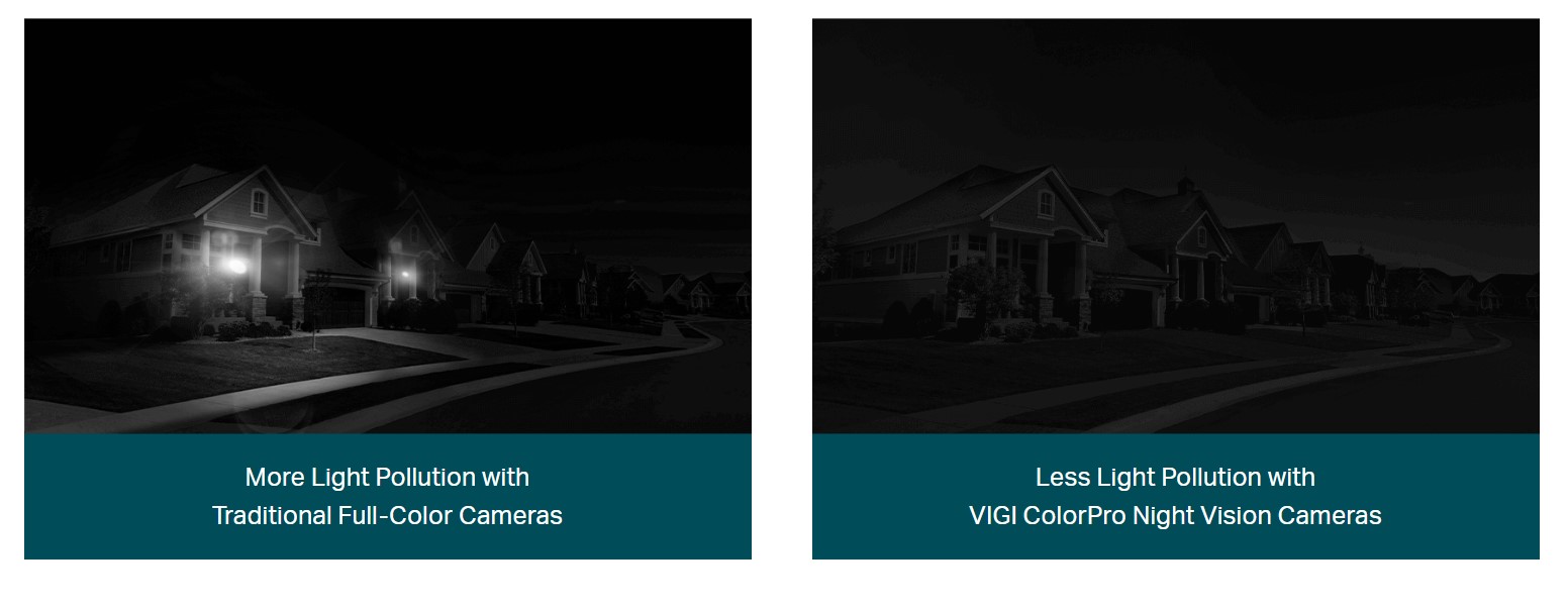 Водещата в индустрията технология за нощно виждане ColorPro на VIGI позволява на нейните камери да пробиват нощта и да виждат всичко с фини детайли.