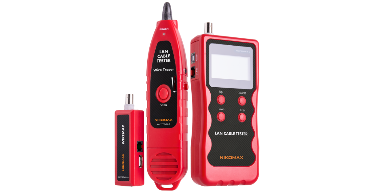 NIKOMAX кабелен тестер с дисплей. Тества RJ11, RJ12, RJ45 – UTP/STP, BNC, USB кабели (type A - type B). Измерва прекъсване и късо съединение, тества правилно опроводяване и цялостта на екранировката. Измерва дължината на трасето на кабела – максимално до 1 000 метра (в метри, футове и ярдове). 7 стойности на калибриране. Интерком система. Устройство за проследяване на кабела и откриване на кабела в сноп от кабели. Регулиране на контраста на дисплея и време за автоматично изключване. Батерия тип Krone (6LR61). Работна температура -10º~60ºC. Гаранция 2 години.