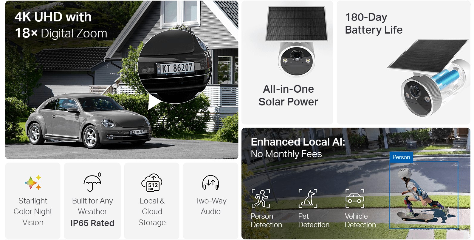 4K UHD осигурява по-остро и детайлно видео на живо — идеално за разпознаване на регистрационни номера, дворове, домашни любимци и др.