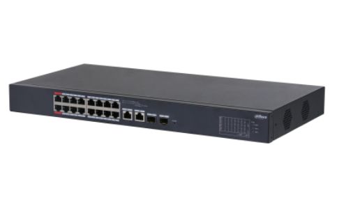 18-портов управляем/WEB Managed Layer-2 POE суич оптимизиран за системи за видеонаблюдение. 16 порта х 10/100Base-TX POE, Combo 2 x uplink порт x 10/100/1000Base-T, Combo 2 x Оптичен порт 1000Base-X. POE protocol IEEE 802.3af;IEEE 802.3at;Hi-PoE;IEEE 802.3bt, максимална мощност на порт 1&2: 90W, максимална мощност на порт 3÷16: 30W. Обща мощност 240W, POE-Management & Statistics. WEB-управление и централизирано cloud управление. Комутираща способност: 7,2Gbps. Поддържани протоколи: VLAN 802.1Q, Port Mirroring, DCHP-client, Flow Control: Half & Full-duplex, IP & Mac binding, Extended Mode 250m POE. Работна температура: -10ºC~55ºC. Вградена гръмозащита 6kV/1kV. Размери: 440х229х44mm, Rack-mount. Захранване: AC100~240V.