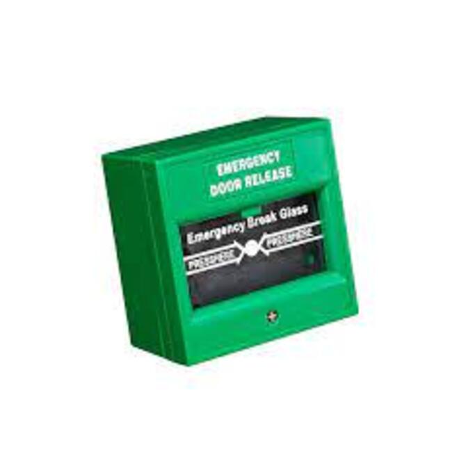 Възстановяем авариен бутон за контрол на достъп от трудно горим материал. Зелен. Размери 90х90х56mm. Изход NO/NC.
