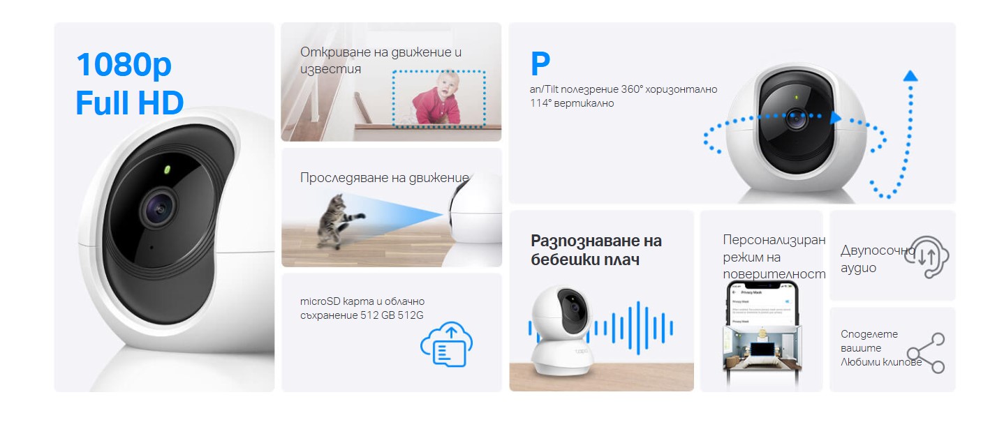 | Допълнителни възможности | Tapo Camera app |