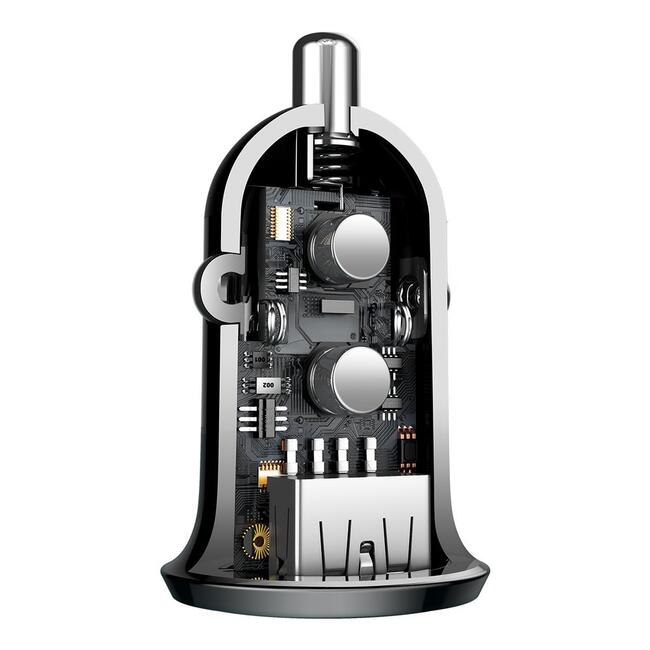 Едно малко зарядно за кола може да бъде много мощно. Това доказва продуктът на Baseus, оборудван с два USB порта за зареждане. Общата мощност, с която може да работи и зарежда две устройства е 4.8А. Бързо и безопасно благодарение на използването на до 6 интелигентни функции за сигурност.