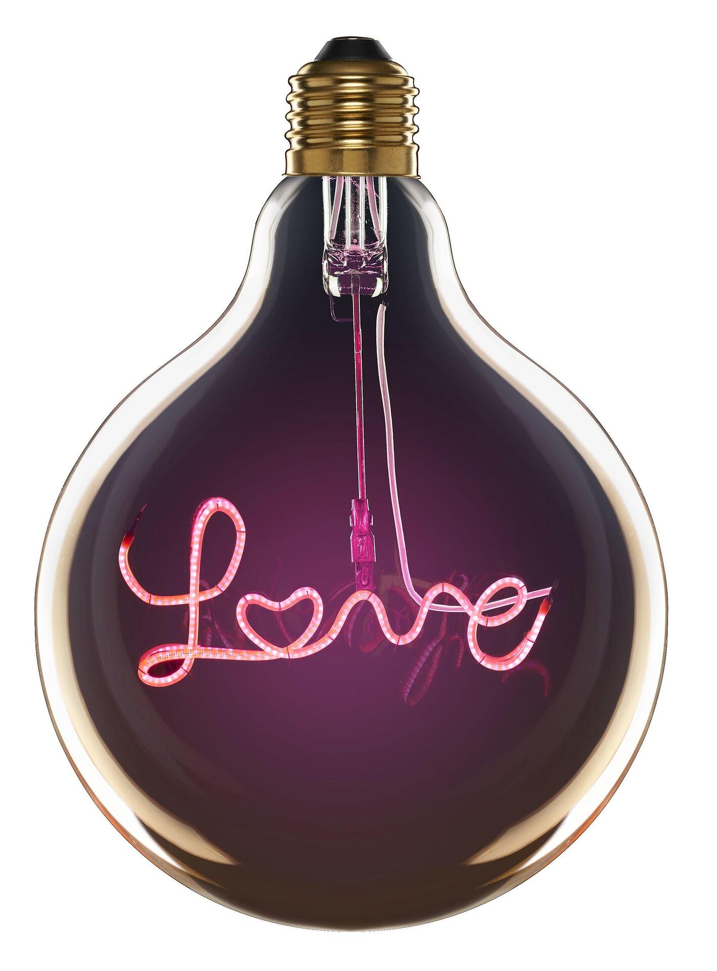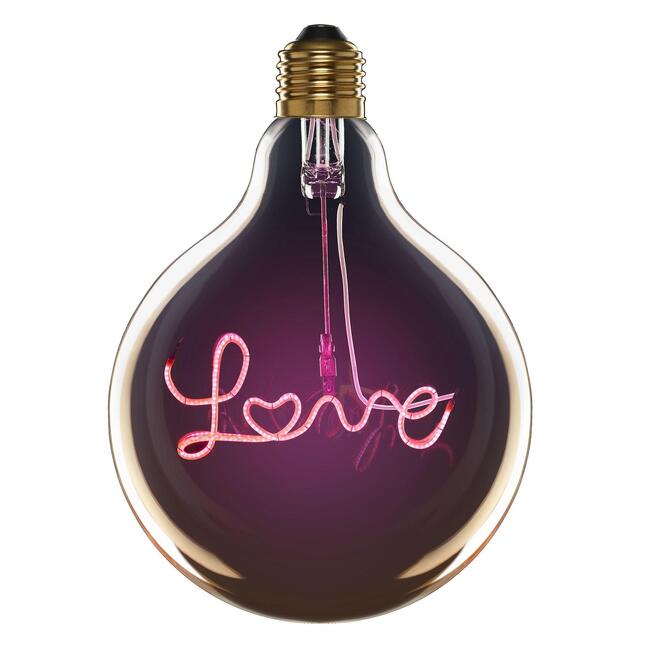 FANCY BULB LED с надпис Love е специална крушка, която персонализира и осветява всяко помещение, създавайки комфортна и уютна атмосфера. Този тип крушки изискват тип фасунга E27 и имат 2 вата мощност.