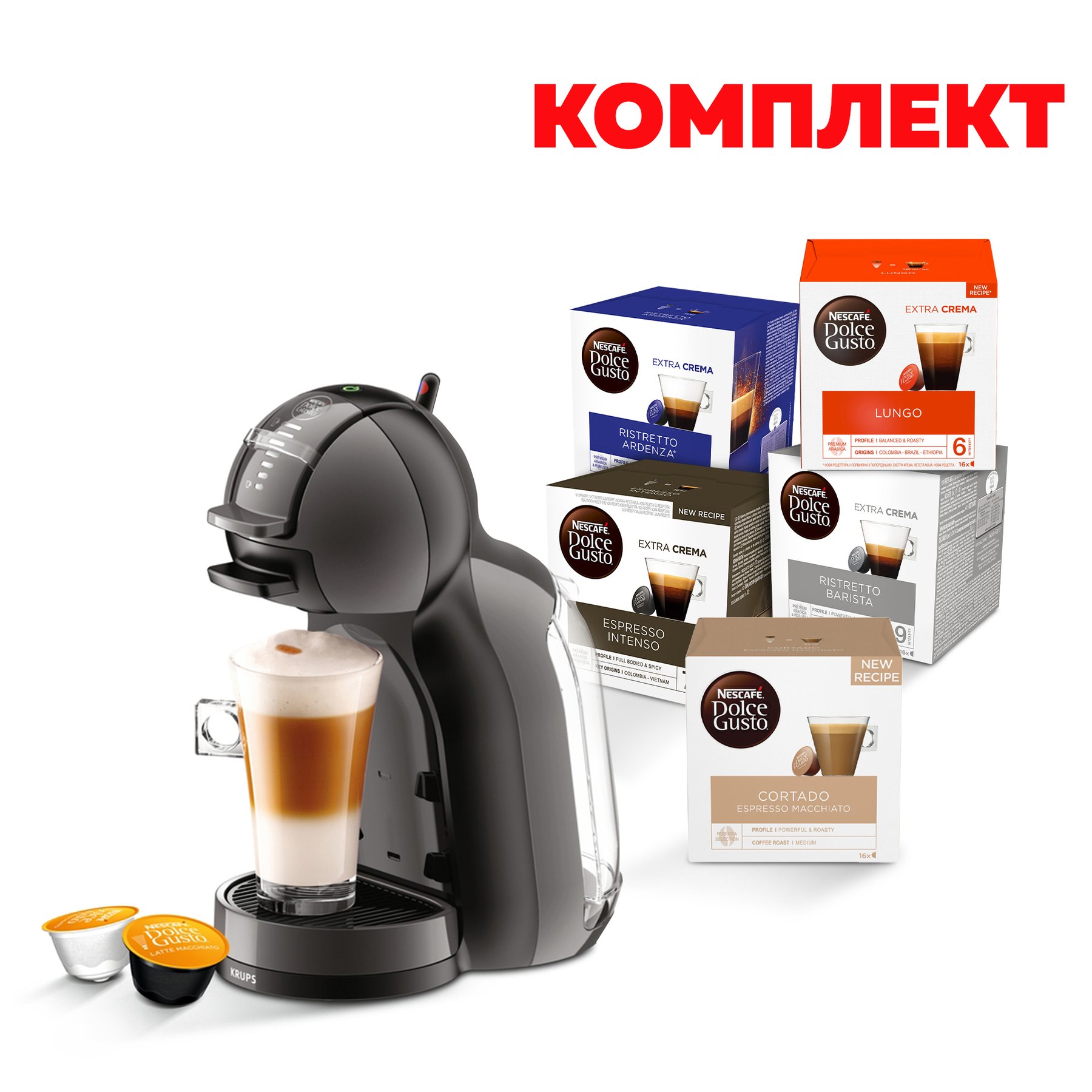Krups Кафе машина Mini Me KP123810, автоматична, 1500 W, черна, в комплект с Nescafé Dolce Gusto Кафе капсули, 80 броя
