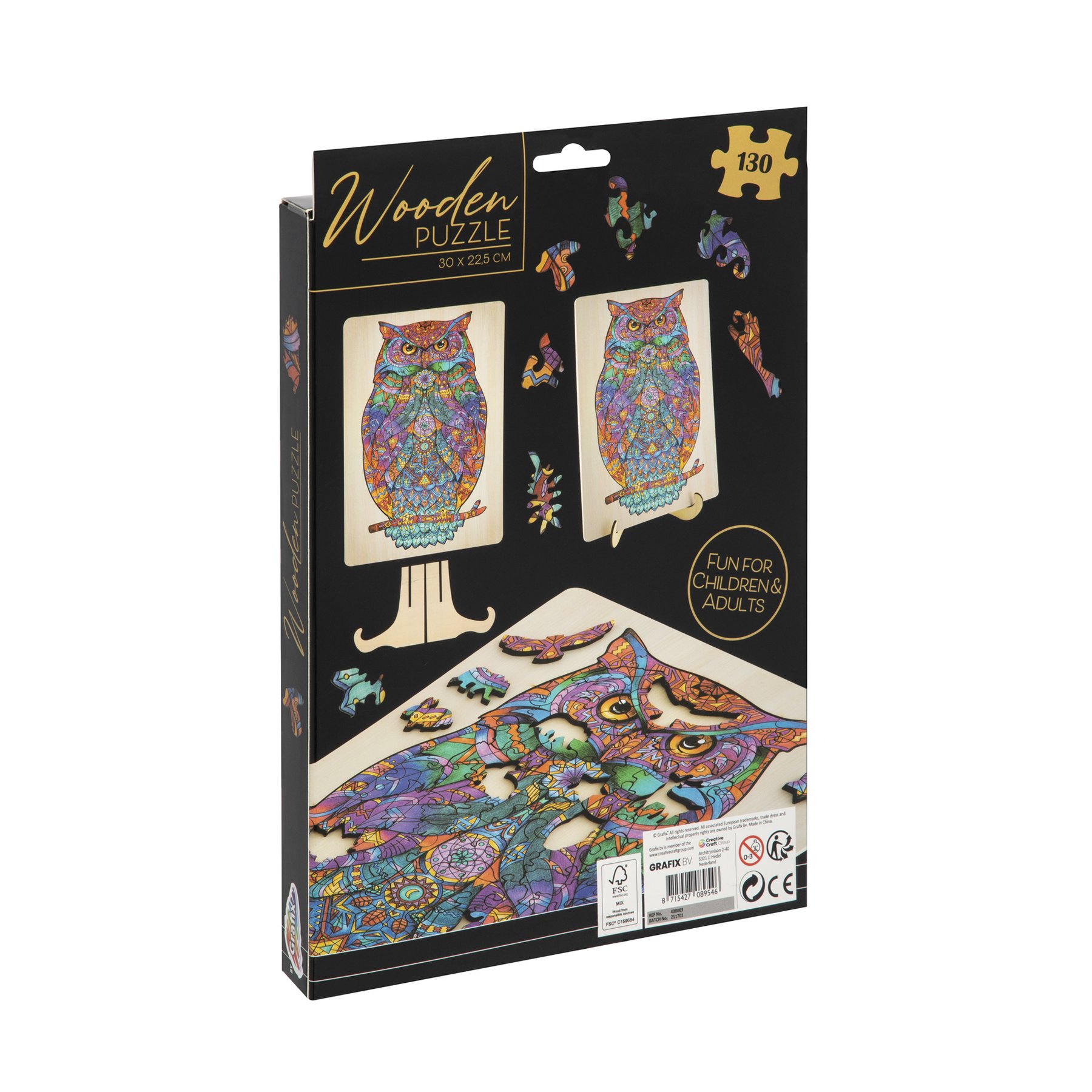 Moxy Пъзел с уникални форми - Бухал, дървен, 130 части