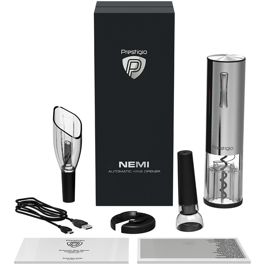 | Включени аксесоари | USB кабел Ръководство за употреба Гаранционна карта Смарт отварачка за вино Нож за разрязване на фолиото Аератор Вакуумен предпазител за ограничител |