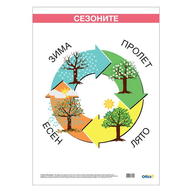 Ламинирано ученическо табло ''Сезони''.Размер: 50 x 70 cm.n