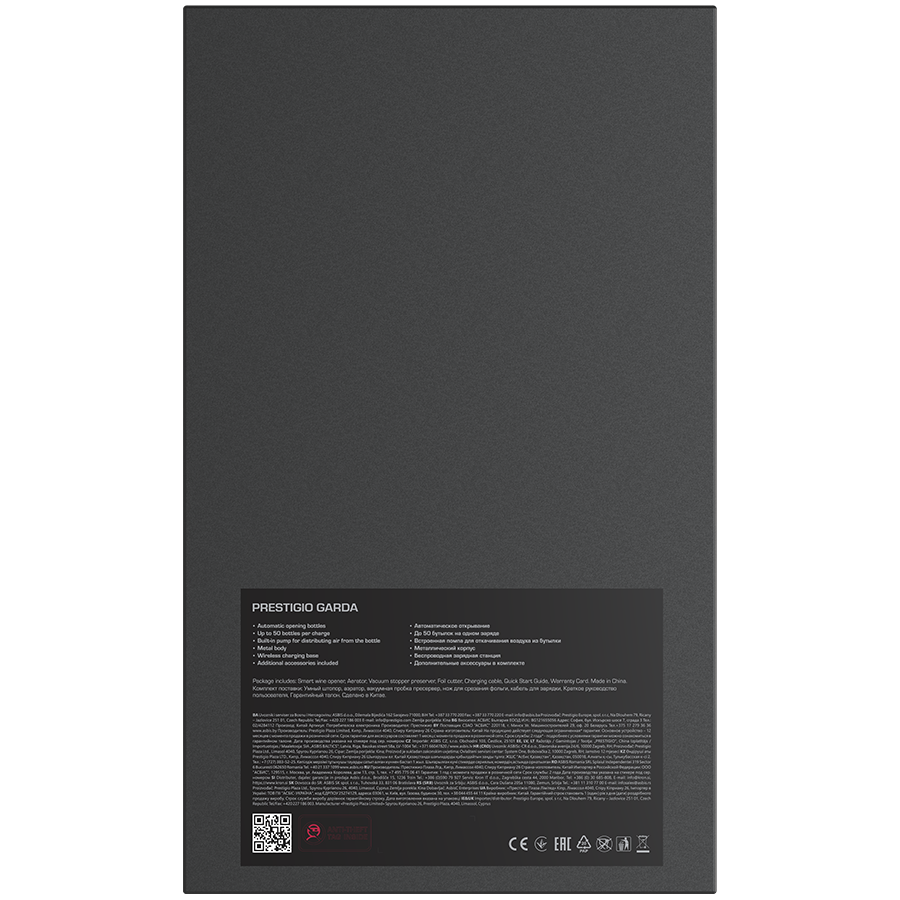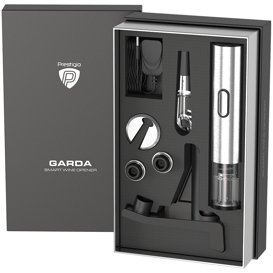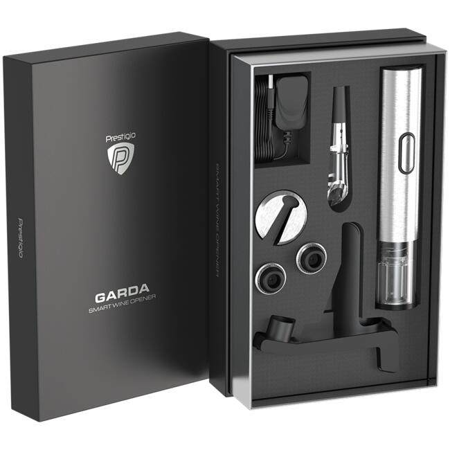 | Включени аксесоари | Кабел за зареждане Ръководство за употреба Гаранционна карта Стойка за зареждане Смарт отварачка за вино Нож за разрязване на фолиото Аератор Вакуумна запушалка |