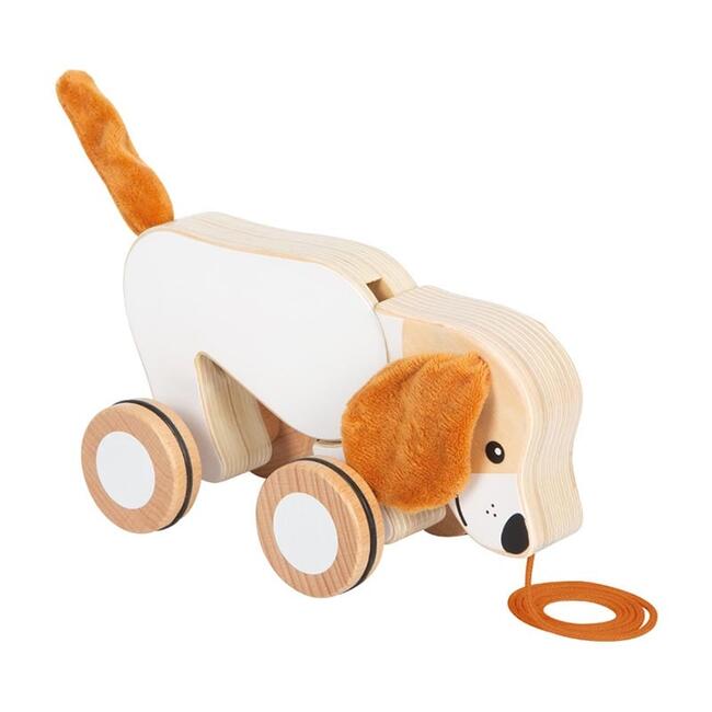 nnnТази дървена играчка за бутане и дърпане е създадена по принципите на образователните играчки Монтесори, като насърчава активната игра и подпомага естественото развитие на детето. Детето лесно може да дърпа кученцето със здравото въженце, което ще го стимулира да се движи повече и да открива нови пространства.