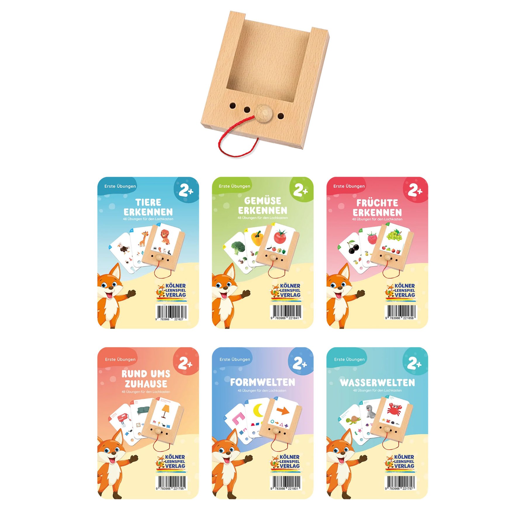 Стартовият комплект Puncho превръща ученето в увлекателно, практическо и самостоятелно преживяване, което стимулира логическото мислене и любопитството на децата още от ранна възраст.nКомплектът е подходящ както за индивидуални занимания у дома, така и за групова работа в детски градини и начални училища. Той подпомага развитието на внимание, наблюдателност, логическо мислене и умения за асоциация по забавен и ефективен начин.nКомплектът включва:nДървена кутия Puncho – специално проектирана кутия с перфорирани отвори за интерактивна работа с образователни карти. Системата позволява на детето активно да участва в процеса на учене, като самостоятелно проверява своите отговори и получава незабавна обратна връзка.nШест комплекта образователни карти, подходящи за деца над 2 години. Един комплект карти съдържа 24 двустранни карти с общо 48 упражнения:n        - Образователни карти Познай животното;n        - Образователни карти Уча Зеленчуците;n        - Образователни карти Уча Плодовете;n        - Образователни карти Предмети от бита;n        - Образователни карти Формите;n        - Образователни карти Морски свят.nКартите са двуезични (немски/английски) и са отпечатани от двете страни, което осигурява широк спектър от възможности за учене.nnНачин на използване:nДетето поставя карта с картинка или въпрос в плъзгащия се слот и избира отговор, като вмъква дървеното колче в съответния отвор. При правилен отговор картата може да бъде извадена; при грешен – остава на мястото си. Този механизъм осигурява ясна и непосредствена обратна връзка, насърчава самостоятелната проверка и изгражда увереност в ученето.