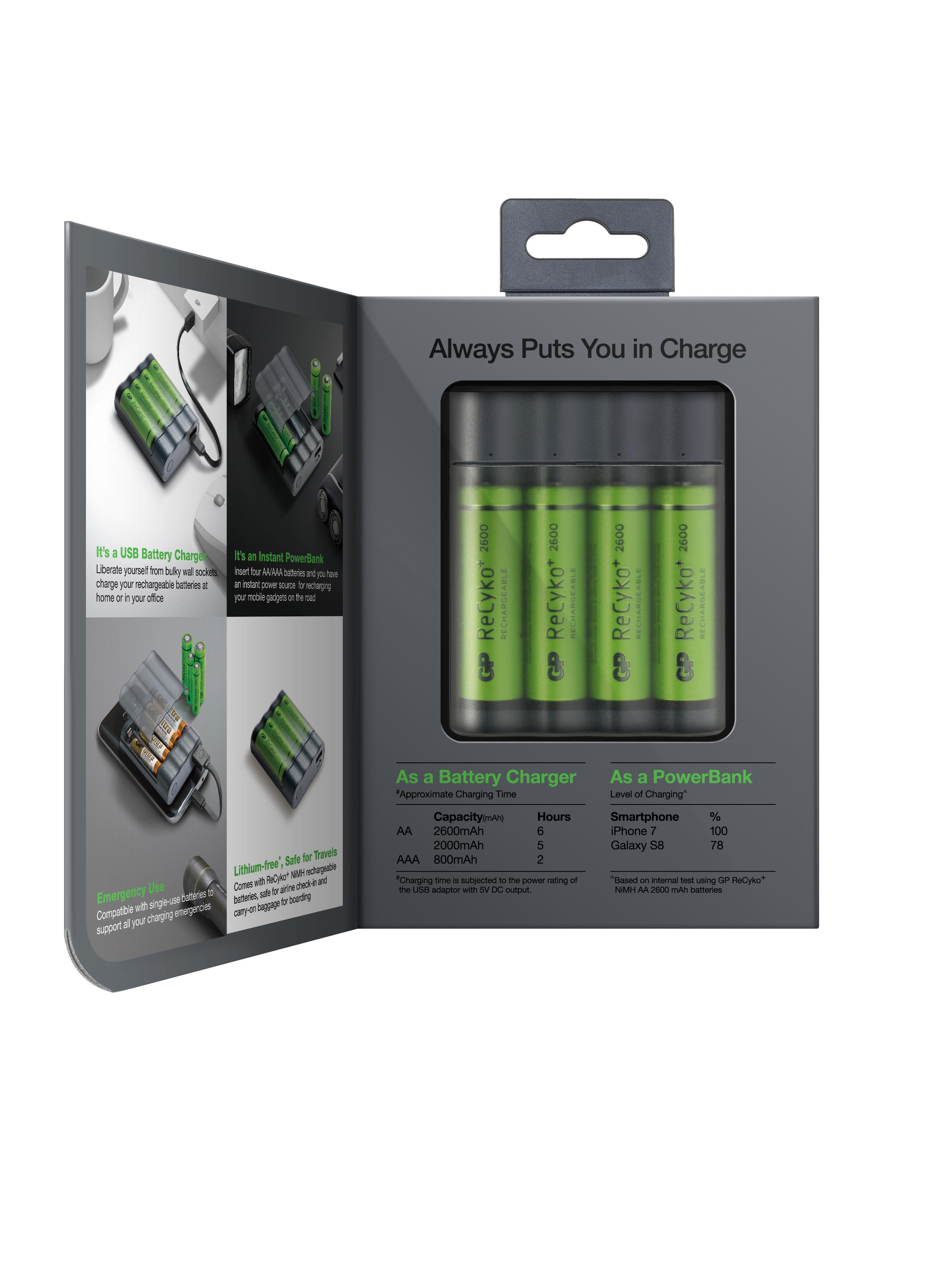 Зарядно устройство + power bank 2 IN 1 Charge Anyway X411 + 4 акум.батерии R6 AA 2600mA GP