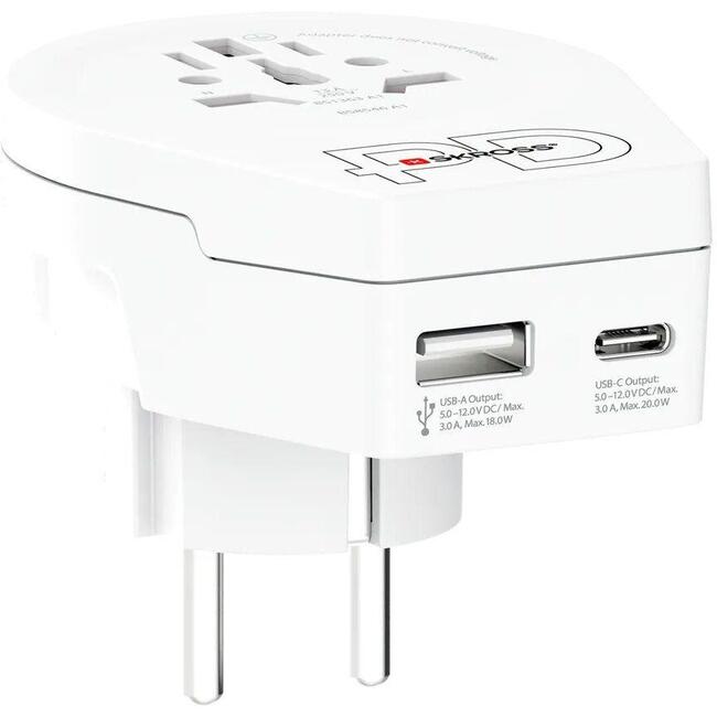 Подходящ дори за по‑мощни устройства като лаптопи и пътнически сешоари.