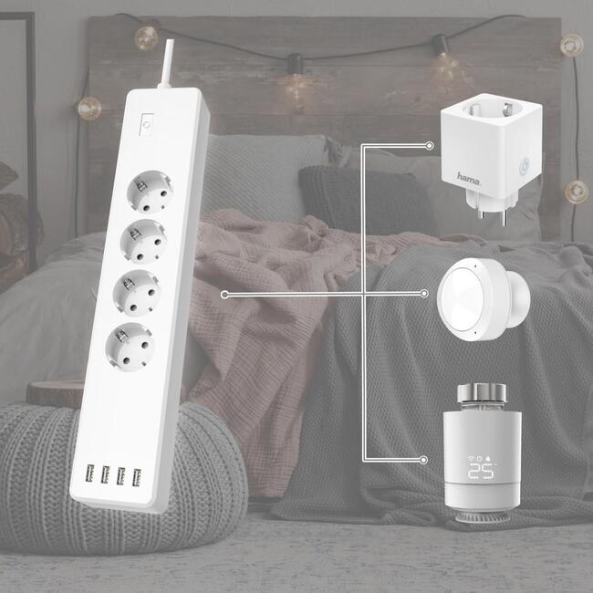Смарт Wi-Fi разклонителят Hama позволява интелигентно управление на четири електрически уреда и USB устройства от едно място или дистанционно чрез мобилното приложение Hama Home. Всеки контакт може да бъде управляван поотделно, което го прави идеален за домашно кино, осветление, мултимедия и други електроуреди.