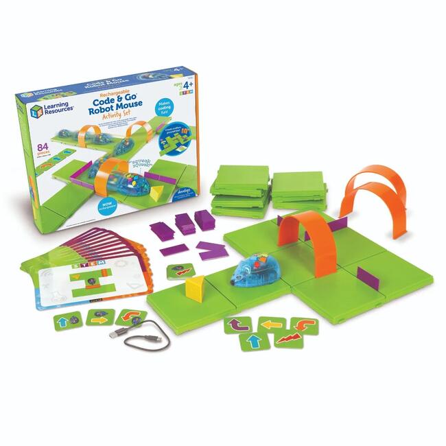 <p>Превърнете първите стъпки в кодирането в игра с програмируемата мишка Code & Go от Learning Resources – вече с вградена презареждаща се батерия за по-екологична употреба.</p>nЦветните бутони на гърба позволяват на децата да въведат до 40 стъпки: напред, назад, завой, пауза или светлинен ефект. Натиснете „Go“ и мишката се плъзва, избягва препятствия, намира сиренце и издава забавни звуци, демонстрирайки връзката между алгоритъм и действие.</p>nВ комплекта получавате USB кабел за зареждане, стартово сиренце и карта с предизвикателства, която постепенно въвежда понятия като цикъл и последователност.</p>nКорпусът е удароустойчив, колелцата – гумени за плавно движение върху различни настилки. </p>Упражненията развиват логическо мислене, ориентация в пространството и умения за работа в екип.</p>nДобавете Code & Go в STEM къта си чрез Office 1 и наблюдавайте как децата програмират с усмивка.</p>