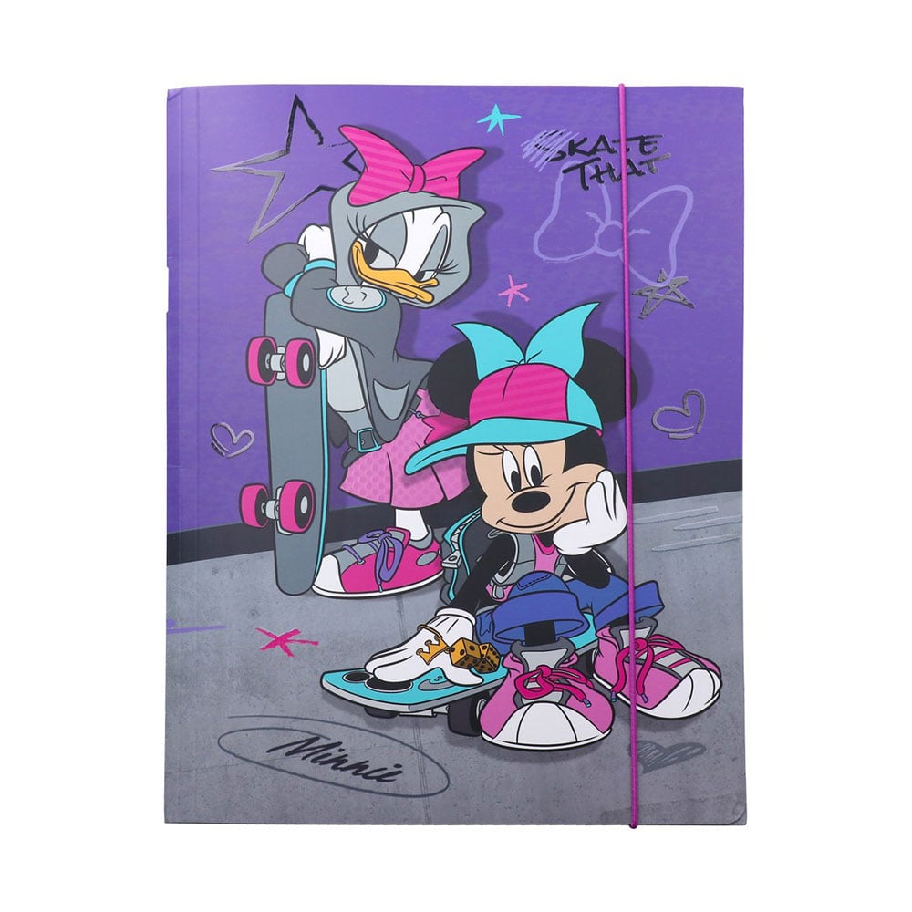 Картонена папка с копче, подходяща за училищни и ежедневни дейности. Осигурява надеждно съхранение и удобно пренасяне на документи, тетрадки и листове, като поддържа съдържанието добре организирано. Мотивът е приятен за окото - кой не харесва Мини Маус?nРазмери: 24.1 x 34.8 cm. Материал: картон 300 g/m2.